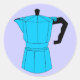 Um fazedor de café com pote de espresso azul. Fazer fresco java no topo do fogão é divertido!