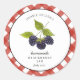 Adesivo Redondo Pote de Gingham de Geleia de Amora em Aquarela