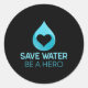 Adesivo Redondo Poupe Água - Seja Um Herói. Proteção ambiental