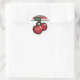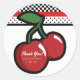 Red Cherries Black Custom Retro Party Favor Stickers. Personalize com qualquer texto desejado. Altere a cor de fundo para qualquer cor.