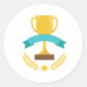 Fita de legenda do vazio com copo de prêmio e coroa de louros.