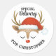 Um rosto bonito de rena com um chapéu de Santa que decora este adesivo com as palavras Feliz Natal. Divertido por decorar presentes de Natal e bolsas de Natal para vizinhos. Personalize-o com o seu nome. Projetado para você pelo Blackberry Boulevard.