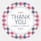 Adesivo Redondo Preppy Red, White e Blue Xadrez Obrigado