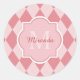 Adesivo Redondo Preppy Rosa claro Argyle Girly Monograma Party Nam