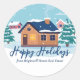Este belo adesivo de presentes de festas imobiliárias personalizado é perfeito para uma empresa de realeza localizada no norte. Um belo desenho caseiro de uma casa alinhada com neve e fumaça saindo da chaminé perto de árvores verdes. Um corretor pode manter Felizes Feriados em um roteiro cursivo ou personalizar com suas próprias épocas de saudação para o Natal.