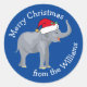 Bons animais de férias são minha parte favorita do Natal. Um belo elefante vestindo um chapéu vermelho de Papai Noel e parecendo feliz. Este adesivo de elefante azul personalizado me enche com o espírito de Natal.