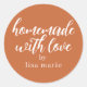 Adesivo personalizado rústico e moderno feito à mão com amor apresenta caligrafia estilosa e manuscrita em um fundo laranja queimado. Perfeito para todos os seus presentes caseiros! Basta adicionar seu nome ao rótulo. Exclusivamente projetado para você pelo Happy Dolphin Studio!