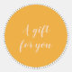 Bonito adesivos para presentes de pequenas empresas para seus clientes com o texto de um presente para você na caligrafia de script elegante cor-de-rosa pastel em um fundo amarelo-melão com um trim listrado branco e preto-na moda. Desenvolvido exclusivamente para você pelo Happy Dolphin Studio. Se precisar de ajuda ou produtos correspondentes, entre em contato conosco em happydolphinstudio@outlook.com.