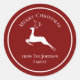 Uma rena branca elegante salta por baixo do Feliz Natal. Personalize esses rótulos vermelhos de presentes de feriado seu nome familiar embaixo para belos presentes personalizados.