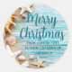 Um bonitinho adesivo de férias de praia para uma companhia de ilhas tropicais. Personalize esta bonito madeira azul lacrimogênea e fotografia de concha com o adesivo de presente de Natal com o nome da empresa à beira-mar ou outro texto profissional costeiro.