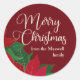 Adesivo Redondo Presente Vermelho Elegante de Poinsettia de Natal