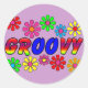 Vintage 70's Mod Flower Power Designs "Groovy" em t-shirts, canecas, correntes-chave, chapéus, aventais, sacos de tote, correio, botões...Flores brilhantes