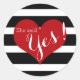 Adesivo Redondo Preta e Branca Ela Disse "Sim"