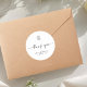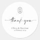 Chic e elegante com estética minimalista. Este lindo adesivo de agradecimento de casamento minimalista apresenta um conjunto contemporâneo de fontes e monograma de casal de casamento contra um fundo branco nítido.
