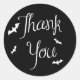 Adesivo Redondo Preto e Branco, Obrigado, Bats Halloween Sticker