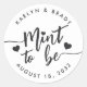 Os adesivos punny do favorito do casamento destacam a "menta a ser" em letras pretas de cinza suave acentuadas com corações. Personalize com seus nomes e data de casamento.