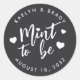 Os adesivos punny do favorito do casamento apresentam "mint to be" em um guião escrito à mão branca, acentuado com corações, em um fundo preto de cinza macia. Personalize com seus nomes e data de casamento.