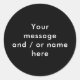 Adicione sua própria mensagem e nome, preto e branco, adesivo redondo clássico personalizado moderno simples. Criado por Thisisnotme©