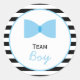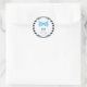 Os gêneros riscados a preto e branco revelam adesivos para chás de fraldas. O design apresenta um padrão listrado preto-e-branco e um círculo com um arco azul e o seu texto.