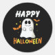 Adesivo Redondo Preto e Laranja com Feliz Halloween Fantasma