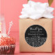 Etiquetas de casamento pretas e prateadas com um aspecto moderno e elegante. O design inclui um padrão prateado de cinzas redondas no fundo do adesivo. Pressione o botão personalizar para fazer as alterações necessárias, aumentar o tamanho do texto, alterar o estilo do texto ou a cor do plano de fundo para corresponder à decoração do casamento.