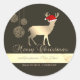 Adesivo Redondo Preto Elegante, Veado de Natal, Santa Chapéu, Comp