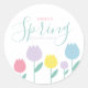 Adesivo Redondo Pretty Spring Tulips Pastel Floral Birthday Party