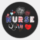 Adesivo Redondo Pride Nurse USA Flag Stethoscope Patriotic Nurse