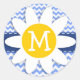Adesivo Redondo Primavera Daisy; Padrão de Chevron Azul