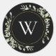 Apresentando uma delicada aquarela deixa verde sobre fundo preto chico. Este adesivo botânico pode ser personalizado com o seu monograma inicial. Perfeito para casamentos, chás de panela, chás de fraldas, batismos, festas de noivado, comemorações de aniversário, graduações, encontros de aniversário e outros eventos especiais ao longo do ano! Projetado por Thisnotme©