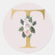 Adesivo Redondo Primavera rosa - letra adesiva das iniciais dourad