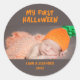 Adesivo Redondo Primeira Cinza de Foto do Bebê do Halloween
