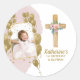 Adesivo Redondo Primeiro Aniversário Baptismo Dourado Balões Rosa