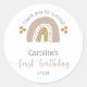 Adesivo Redondo Primeiro Aniversário Boho Rainbow Rosa Dourado Obr