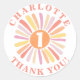 Um primeiro aniversario De Sol Colorido Muito Bom, Obrigado, Clássico Vinheta Redonda. Personalize este design muito facilmente com seus próprios detalhes. Veja a coleção de cheios para decoração de festas e convites para o primeiro aniversário do seu adorável bebê. Feliz personalização!