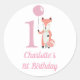 Adesivo Redondo Primeiro aniversario Cinza de Raposa e Balão Rosa