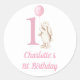 Adesivo Redondo Primeiro aniversario Coelho e Balão Rosa