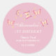Adesivo Redondo Primeiro aniversario De Borboleta Rosa, Obrigado