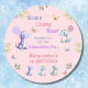 Adesivo Redondo Primeiro aniversario De Dinossauro Rosa, Garota Ro