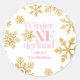 Adesivo Redondo Primeiro aniversario de flocos de neve Dourada ros
