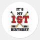 Design de hóquei com paus de hóquei e texto que diz "É o meu primeiro aniversario". Excelente para futuros jogadores de hóquei e bebês que já amam hóquei!