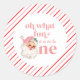 Adesivo Redondo Primeiro aniversário dos Papais noeis cor-de-rosa
