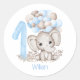 Adesivo Redondo Primeiro Aniversário, Elefante Bonito Em Blue Stic