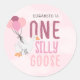 Este adesivo de aniversário "Um Bobo Ganso" apresenta um ganso divertido flutuando com balões cor-de-rosa contra um fundo branco limpo. É uma maneira doce e leve de adicionar um toque pessoal para favorecer bolsas, envelopes ou decoração de festas para o seu primeiro aniversário. Perfeito para um bobo ganha festa temática com tons cor-de-rosa suave e charme caprichoso.