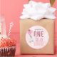 Adesivo Redondo Primeiro aniversario rosa-um-ganso-Bobo