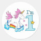 Adesivo Redondo Primeiro aniversario Unicorn Rainbow