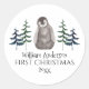 Adesivo Redondo Primeiro Natal Pinguim e Árvore Personalizadas