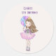 Condecorações de festas para o aniversário temido da princesa de uma menina. Uma garotinha com cabelo e olhos castanhos-claros, ela está vestindo um tutu rosa e roxo com um topo listrado preto e branco com capas roxas. Balões em rosa pastel, azul e roxo ao redor do tema de aniversário. Edite o texto e substitua-o pelo nome e idade do seu filho.