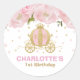 Adesivo Redondo Princesa Carruagem Floral Rosa e Favor Dourado