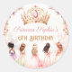 Adesivo Redondo Princesa Coroa Rosa Dourada Garota Floral Aniversá